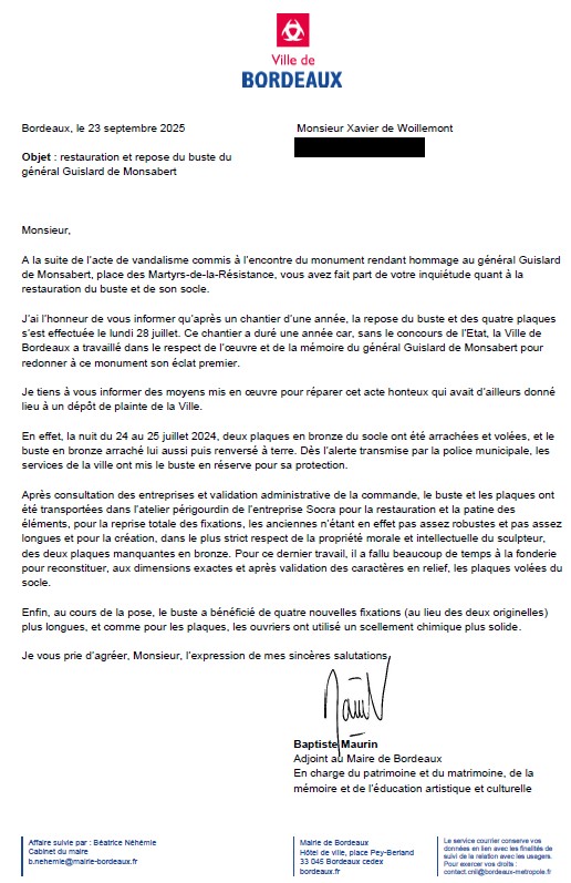 Le 23 septembre 2025, la mairie de Bordeaux a fourni la réponse finale.